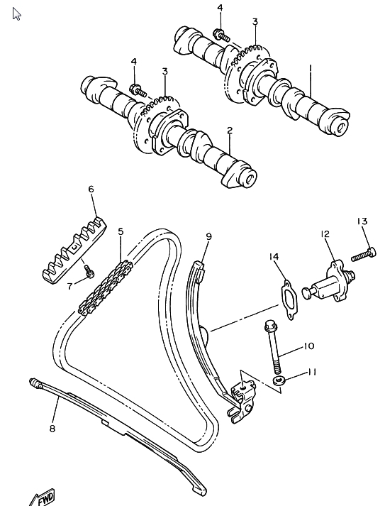 5-Nokkaketju, akselit, XJ 600S DIVERSION 1994, 600 cc, Yamaha -varaosa luettelot