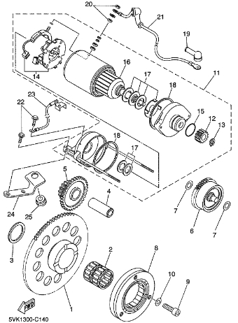 14-Starttimoottori, XT660R 2009, 660 cc, Yamaha -varaosa luettelot