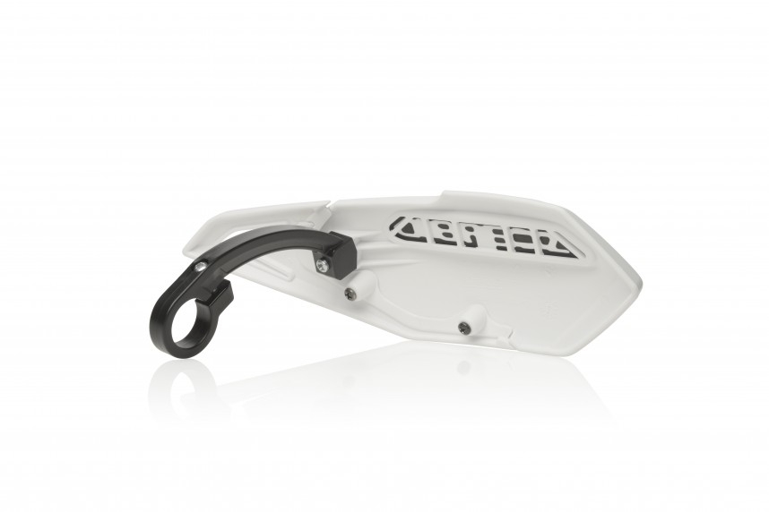 Käsisuoja suojaamaan käsiä oksilta, iskuilta, viimalta jne. Mukana toimitetaan yleismallin kiinnikesarja, mikä sopii E-BIKE / MTB / MINICROSS tankoon. Helppo asennus, ei edellytä muiden tankoon kiinnitettyjen osien irroittamista. Materiaalina thermoplastic, mikä tekee käsisuojasta kevyen, kompaktin ja iskunkestävän. Irrotettava spoileri on suunniteltu suojaamaan jarru- ja kytkinpumppuja.