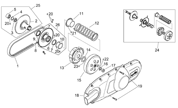 Kytkin , driven, Scarabeo 125-150-200 (eng.Rotax) 99-04, 125-300 cc Scootterit, Aprilia-varaosa luettelot