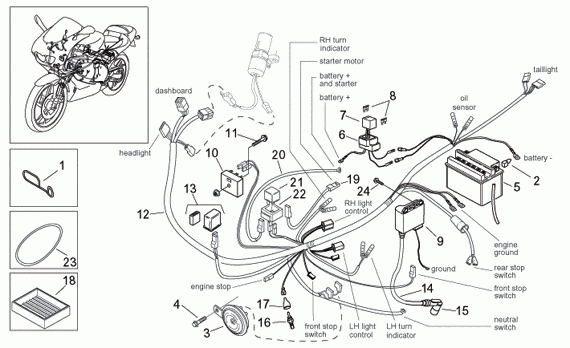 Johtosarja, sähköosia, RS 50 Tuono 2003-2004, 50 cc Vaihteelliset mallit, Aprilia-varaosa luettelot