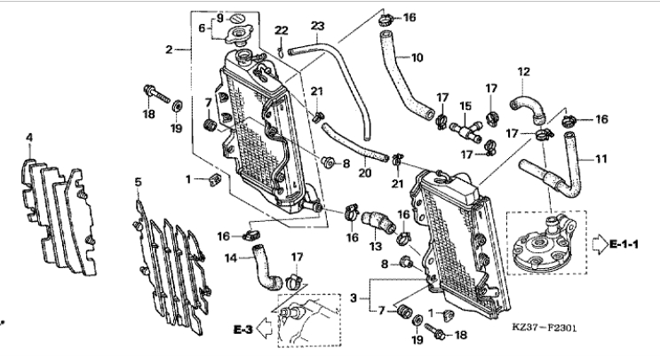 F23-Jäähdytin, CR250R 7 2007, 250 cc, Honda-varaosa luettelot