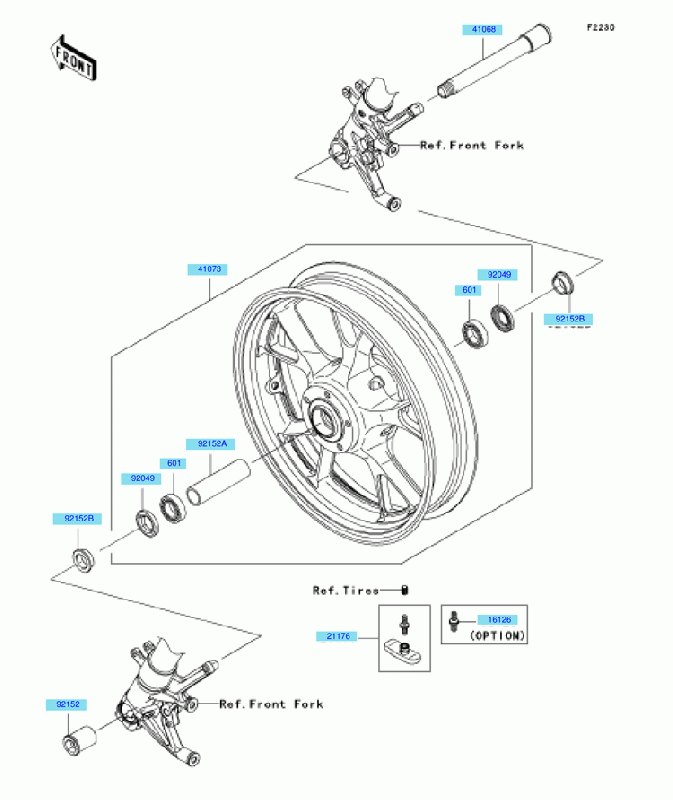F4-Etuvanne, 1400 GTR vm. 2008, 1400 cc, Kawasaki-varaosa luettelot