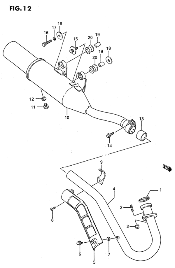 12-Pakoputki, LT 230 EP ATV 1987-1993, 230 cc, Suzuki ATV / mönkijät -varaosa luettelot