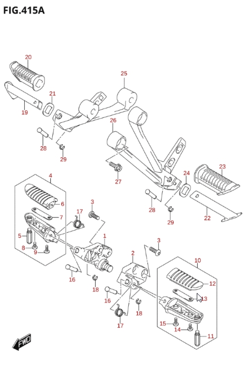 Jalkatapit, DL 1000A 2016 L6, 1000 cc, Suzuki-varaosa luettelot