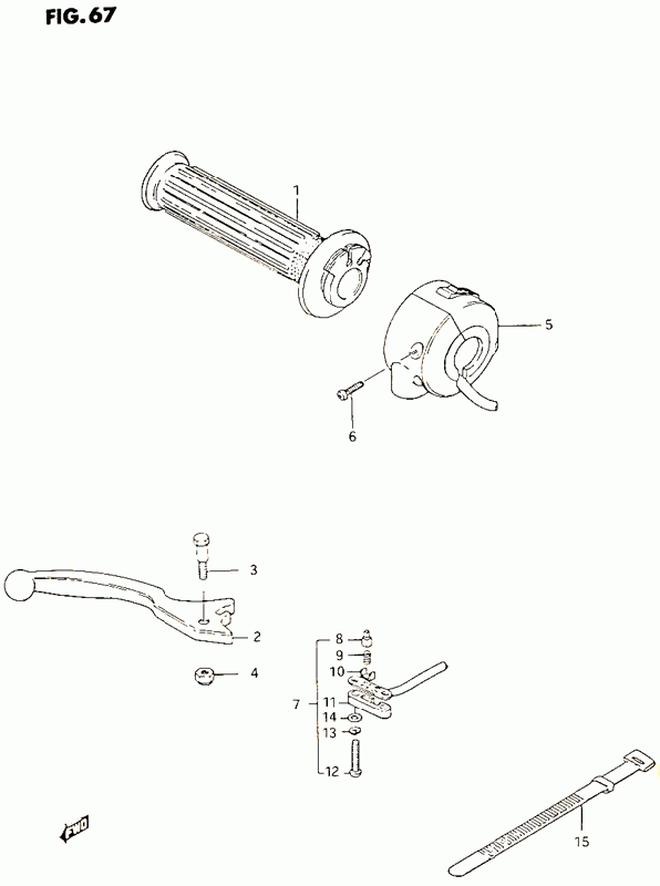 67-Oik.ohj.tangon katkaisija, etujarruvipu, kaasukahva, GS1000 G Kardaani, 1000 cc, Suzuki-varaosa luettelot