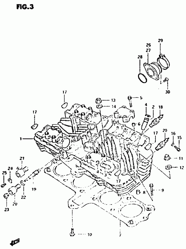 03-Sylinterikansi, -tiiviste, imukurkku, GS-1100 G Kardaani *, 1100 cc, Suzuki-varaosa luettelot