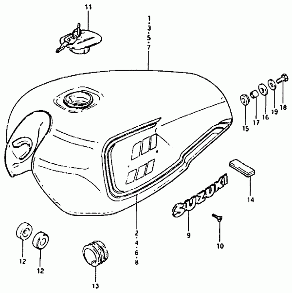32-Polttoainesäiliö-merkit, GSX 1100 X 1981 *, 1100 cc, Suzuki-varaosa luettelot