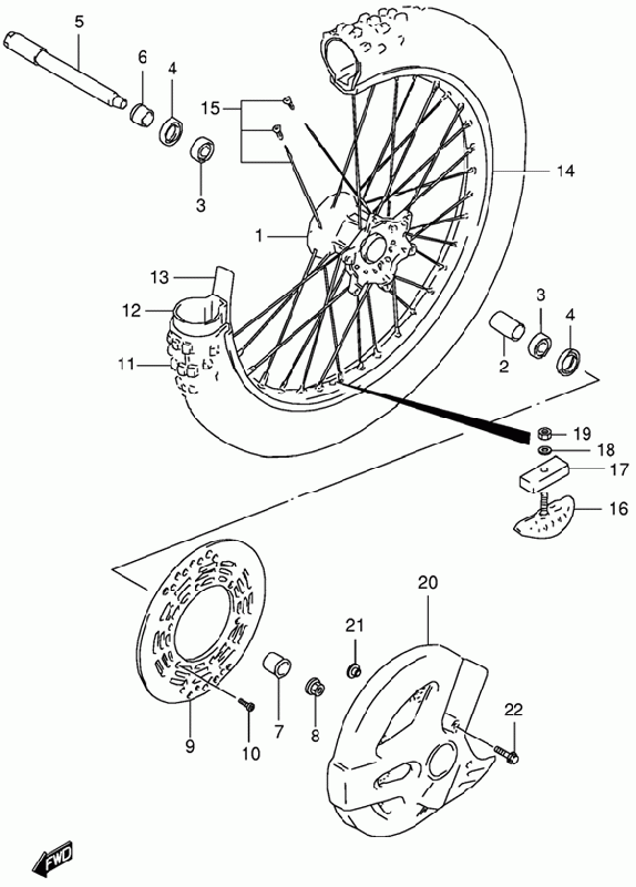 44-Etupyörä 96, RM-125 T,V,W,X,Y 1996-2000 , 125 cc Motocross, Suzuki-varaosa luettelot