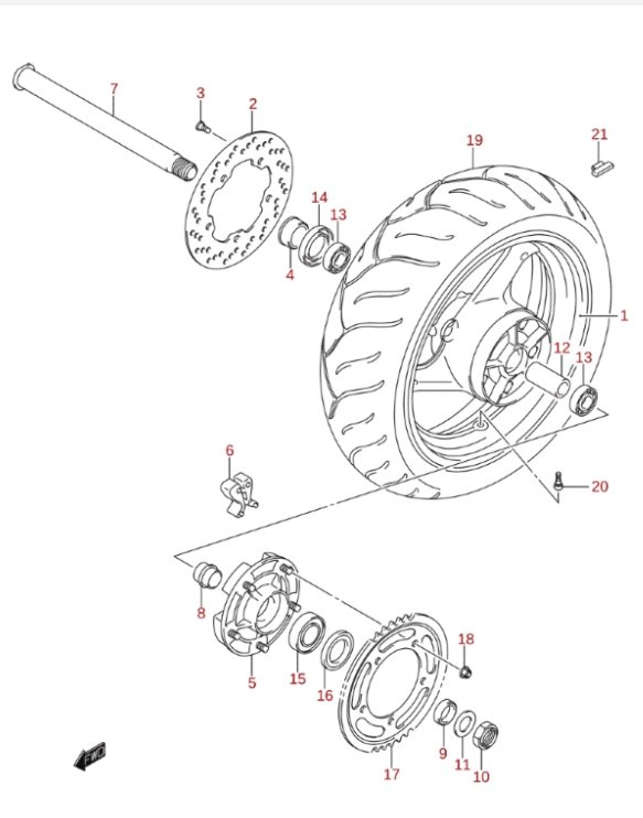 550B-Takapyörä, GSF1250 2008 K8, 1250 cc, Suzuki-varaosa luettelot