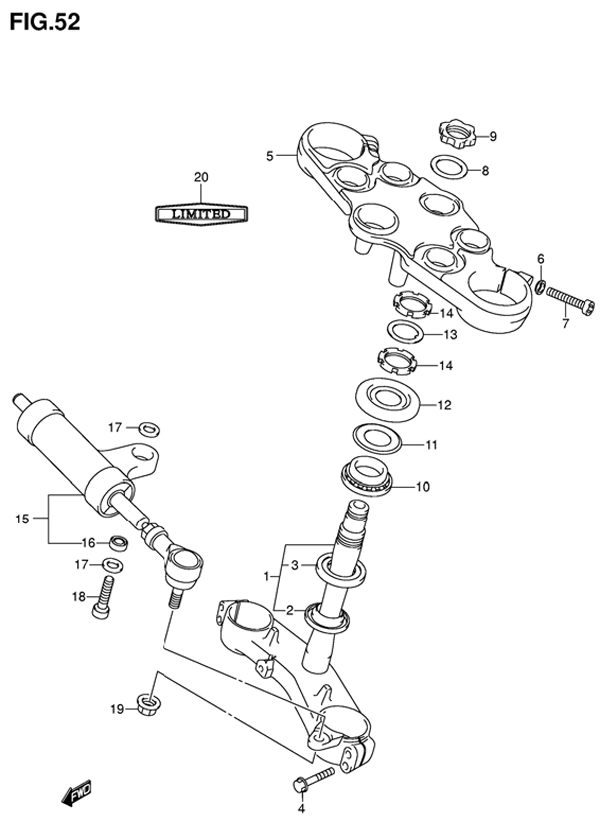 52-Ohjauspylväs, -iskunvaimennin, yläkolmio, GSX 1300R K4-K7 2004-2007, 1300 cc, Suzuki-varaosa luettelot