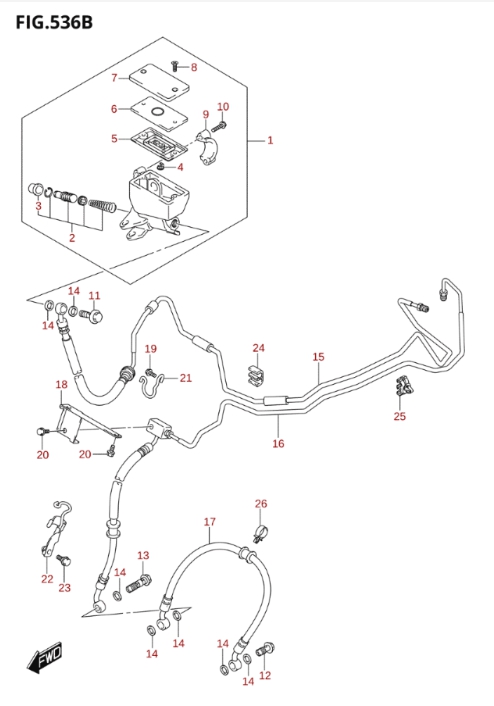 536B-Etujarrun sylinteri,letkut, GSX 1300R L7 2017, 1300 cc, Suzuki-varaosa luettelot