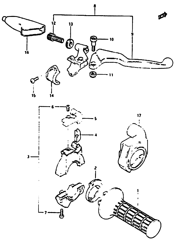30-Etujarruvipu, kaasukahva, RM-250 E,F 1984-1985, RM-250 Alkuperäisluettelot, RM-250, 250 cc Motocross, Suzuki-varaosa luettelot
