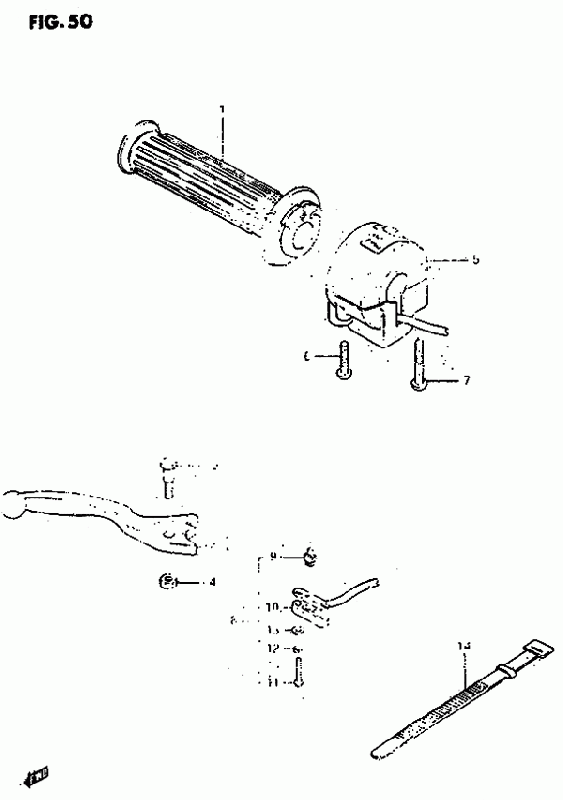 50-Oik.ohj.tangon katkaisin, jarruvipu, kaasukahva, GS 500 ED 4-syl., 500 cc, Suzuki-varaosa luettelot