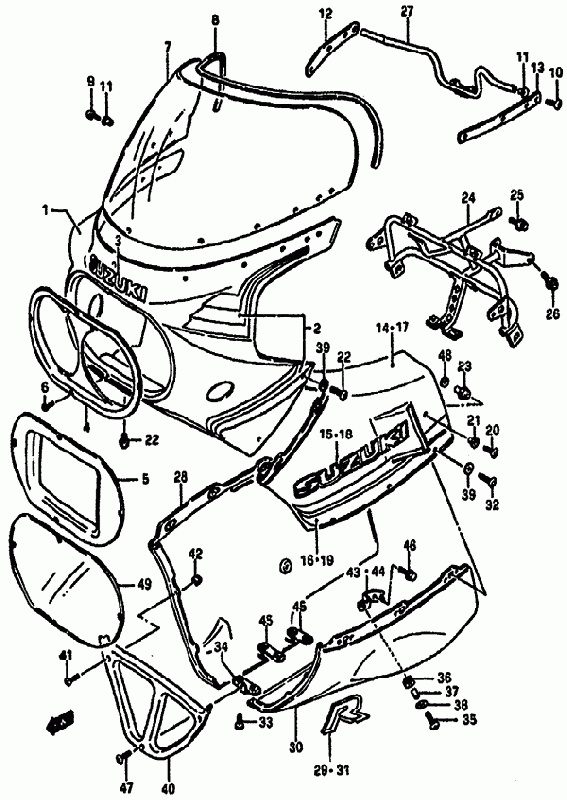 69-Etukate, GSX-R750 F.G.H 1985-1987, 750 cc, Suzuki-varaosa luettelot