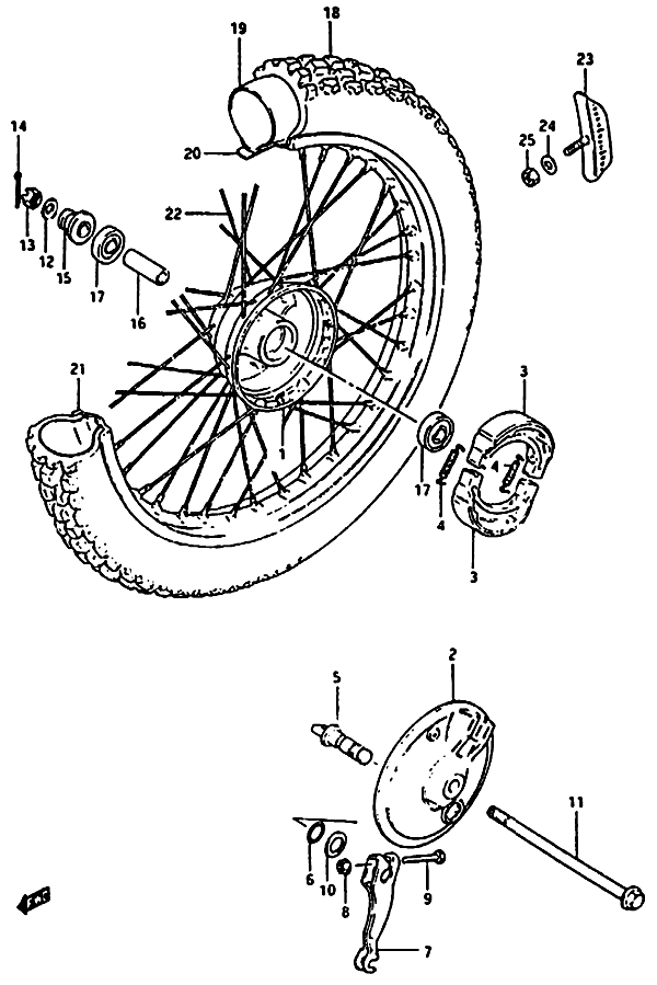 29-Etupyörä, -jarrukengät, RM80X 1983- LC (Pikkupyörä), RM-80 Alkuperäisluettelot / Kuvastot, RM 80, 80 cc, Suzuki-varaosa luettelot