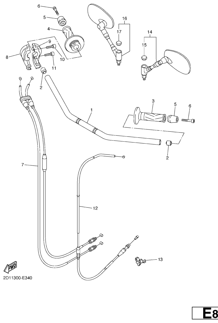 Ohjaustanko ja vaijerit, FZ1-N 2006, FZ1-N, 1000 cc, Yamaha -varaosa luettelot