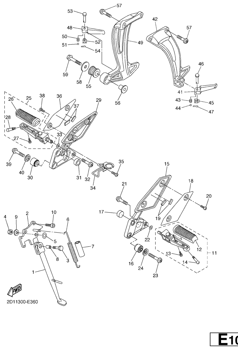 Seisontatuki ja jalkatapit, FZ1-N 2006, FZ1-N, 1000 cc, Yamaha -varaosa luettelot