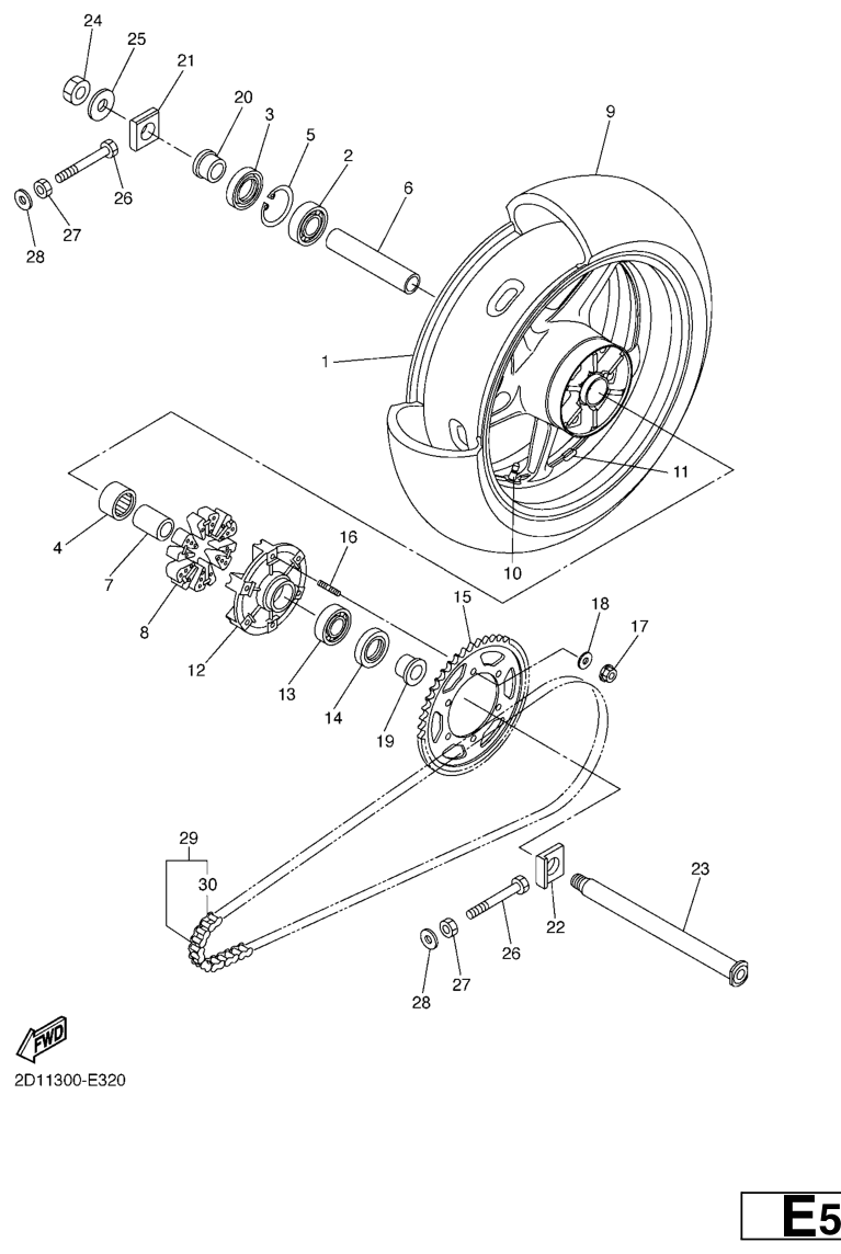 Takapyörä, FZ1-N 2006, FZ1-N, 1000 cc, Yamaha -varaosa luettelot