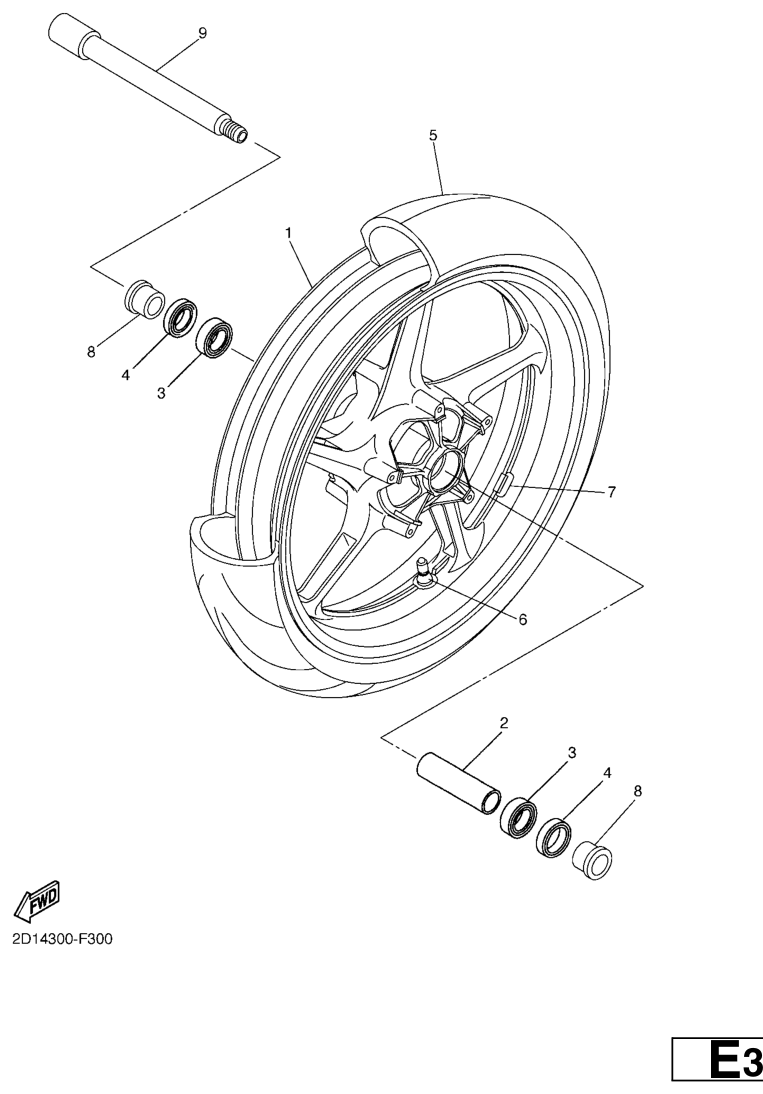 Etupyörä, FZ1-N 2007, FZ1-N, 1000 cc, Yamaha -varaosa luettelot