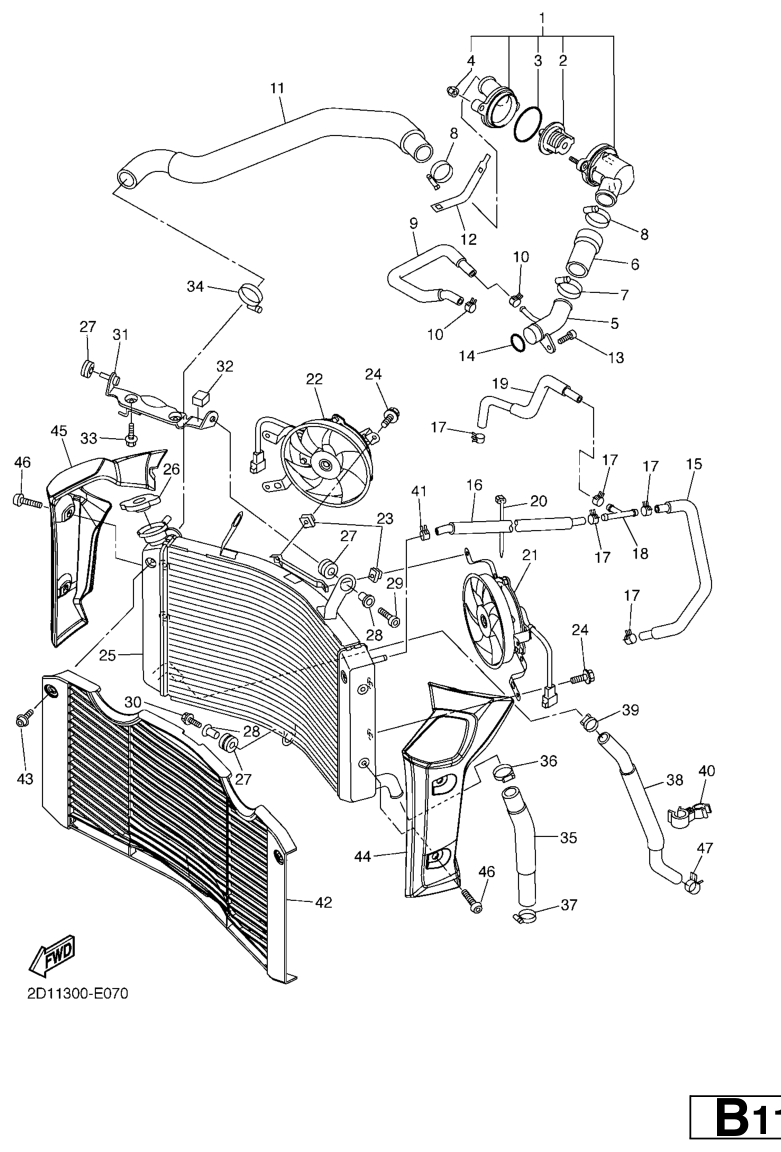 Jäähdytin ja letkut, FZ1-N 2007, FZ1-N, 1000 cc, Yamaha -varaosa luettelot