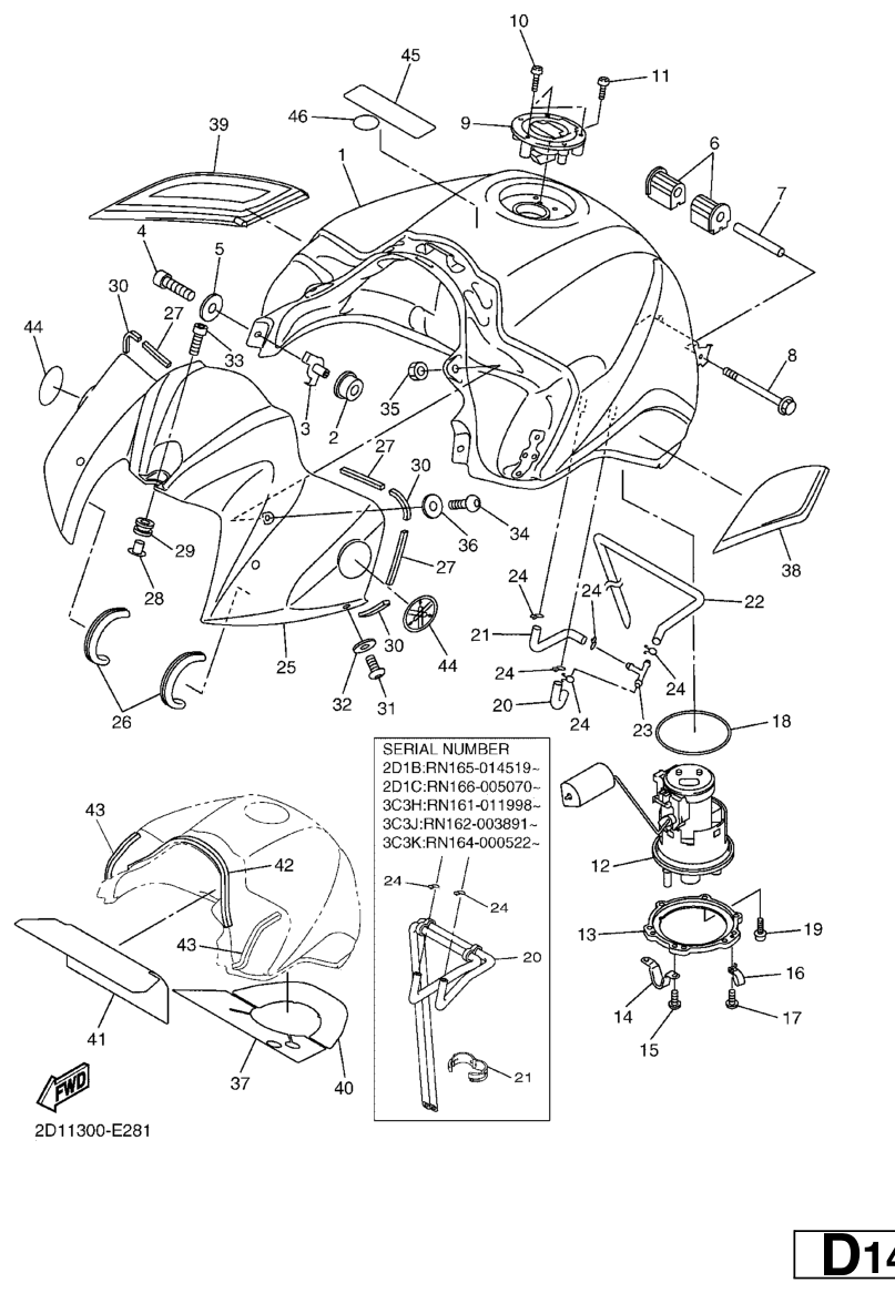 Fuel tank, FZ1-N 2008, FZ1-N, 1000 cc, Yamaha -varaosa luettelot