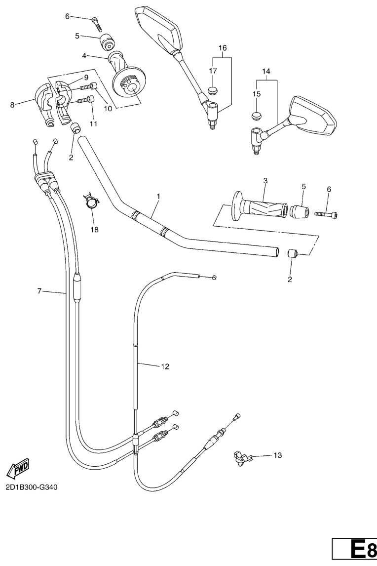 Ohjaustanko ja vaijerit, FZ1-N 2008, FZ1-N, 1000 cc, Yamaha -varaosa luettelot
