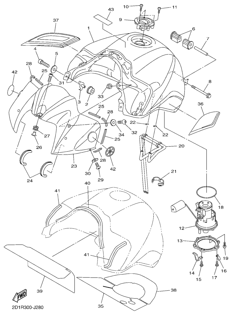 Fuel tank, FZ1-N 2010, FZ1-N, 1000 cc, Yamaha -varaosa luettelot