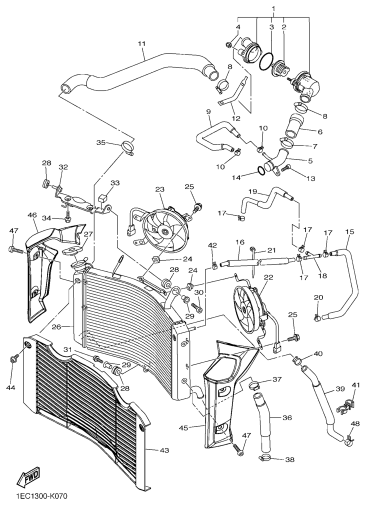 Jäähdytin ja letkut, FZ1-N 2011, FZ1-N, 1000 cc, Yamaha -varaosa luettelot