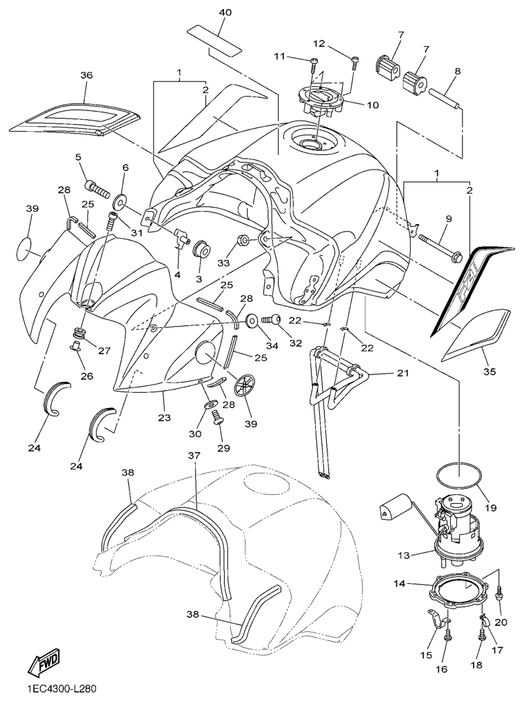Fuel tank, FZ1-N 2012, FZ1-N, 1000 cc, Yamaha -varaosa luettelot