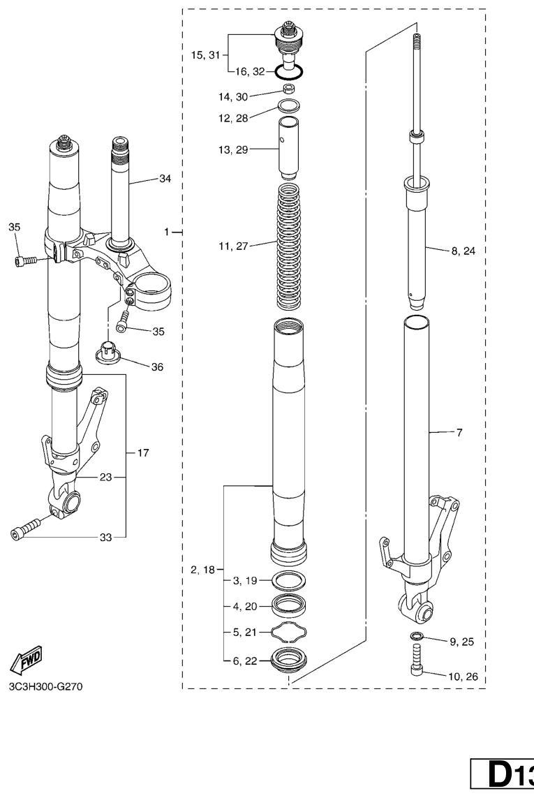 Etuhaarukka, FZ1-NA 2008, FZ1-NA, 1000 cc, Yamaha -varaosa luettelot