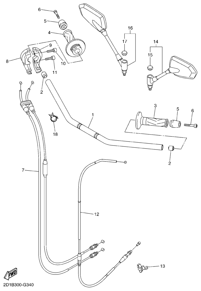 Ohjaustanko ja vaijerit, FZ1-NA 2012, FZ1-NA, 1000 cc, Yamaha -varaosa luettelot