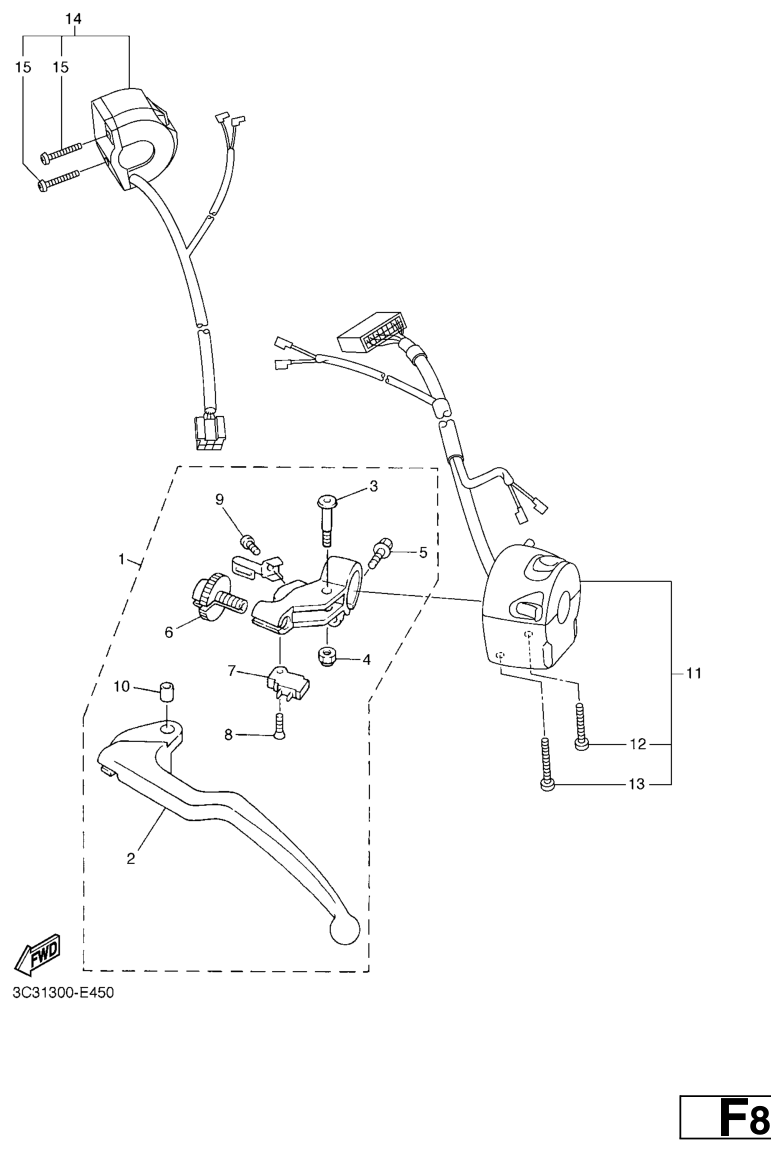 Ohjaustangon katkaisija ja vivut, FZ1-S 2006, FZ1-S, 1000 cc, Yamaha -varaosa luettelot