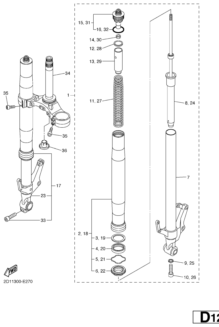 Etuhaarukka, FZ1-S 2007, FZ1-S, 1000 cc, Yamaha -varaosa luettelot