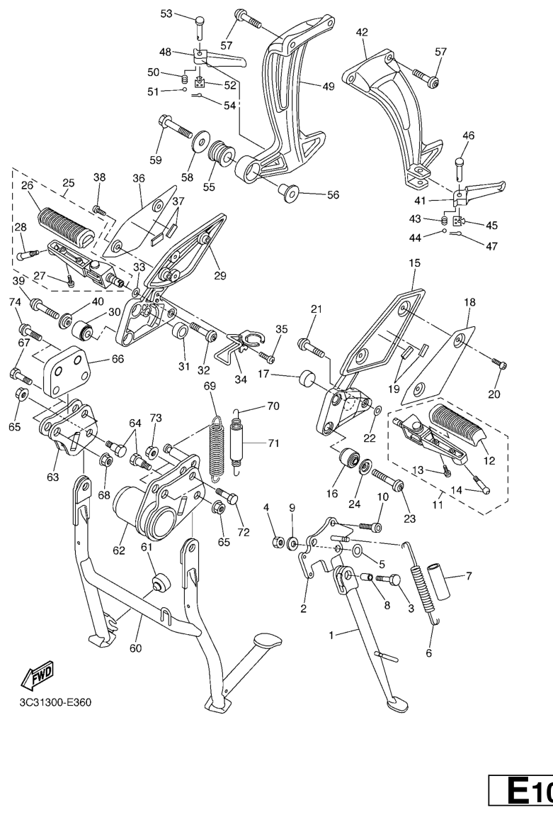 Seisontatuki ja jalkatapit, FZ1-S 2007, FZ1-S, 1000 cc, Yamaha -varaosa luettelot