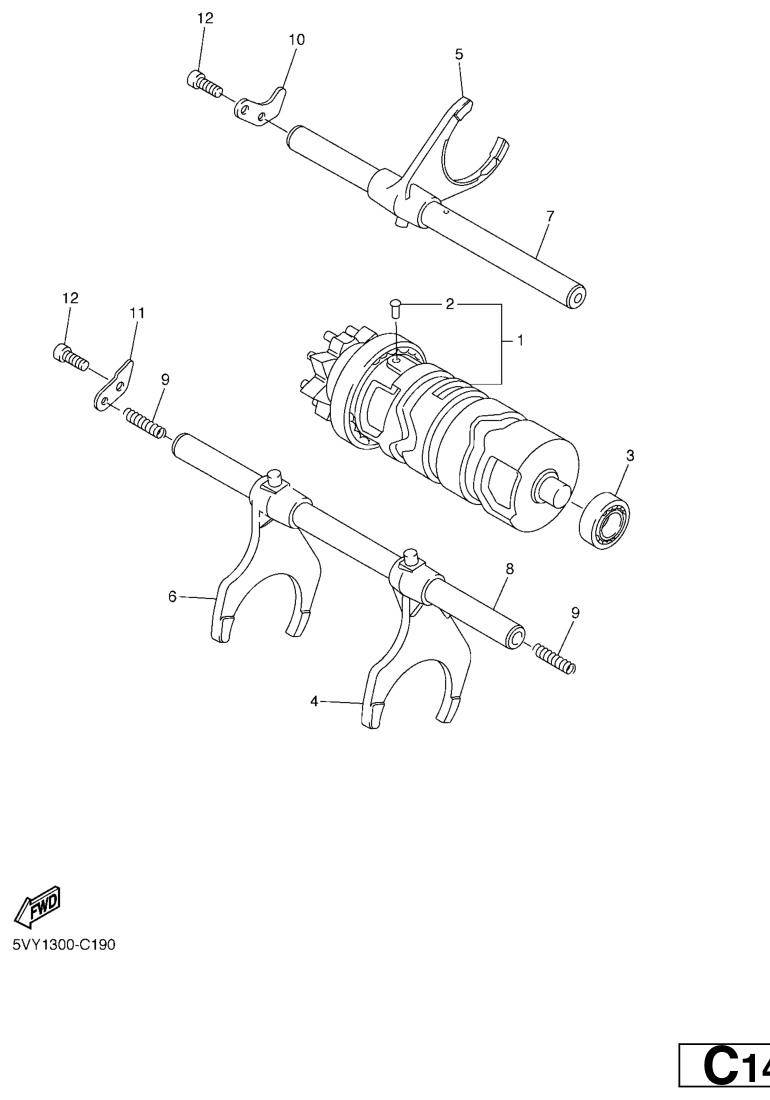 Vaihderumpu ja haarukat, FZ1-S 2008, FZ1-S, 1000 cc, Yamaha -varaosa luettelot