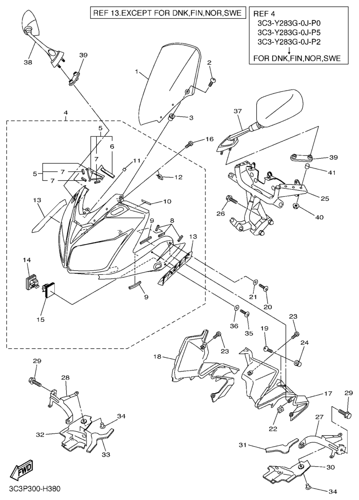Cowling 1, FZ1-S 2009, FZ1-S, 1000 cc, Yamaha -varaosa luettelot