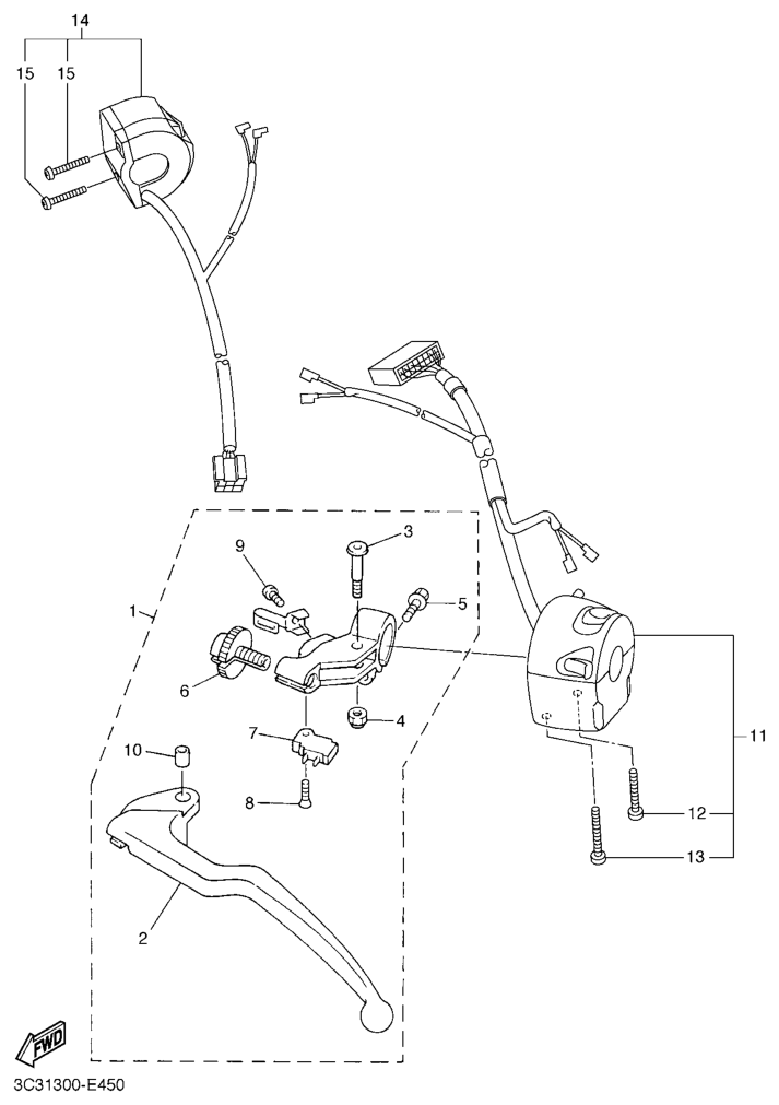 Ohjaustangon katkaisija ja vivut, FZ1-S 2009, FZ1-S, 1000 cc, Yamaha -varaosa luettelot