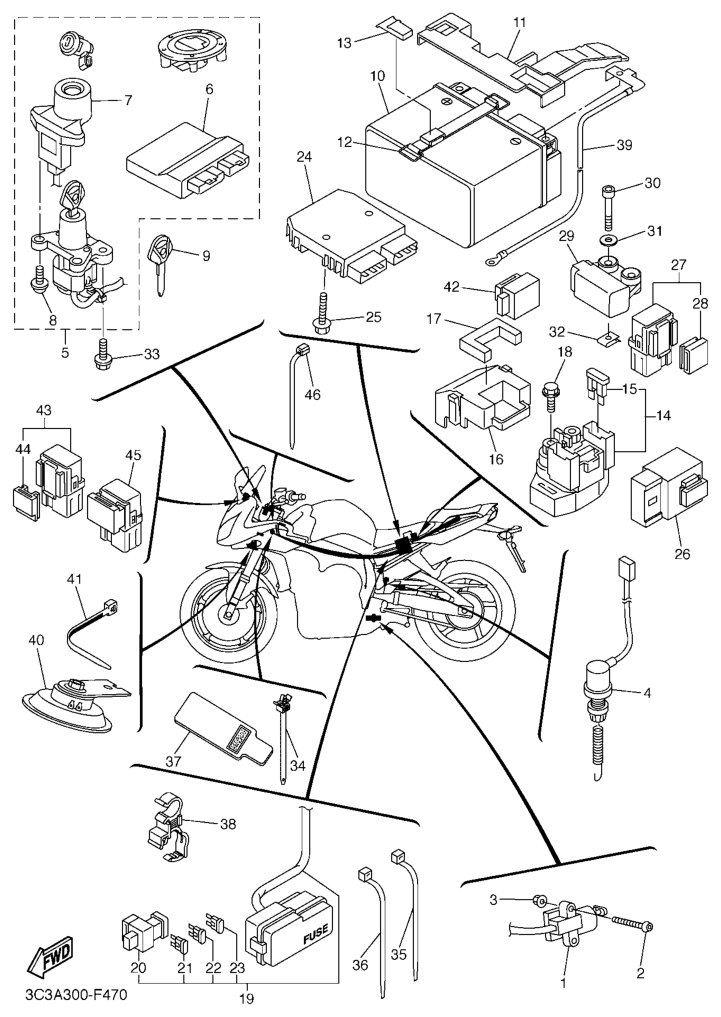 Sähköjestelmä 2, FZ1-S 2009, FZ1-S, 1000 cc, Yamaha -varaosa luettelot