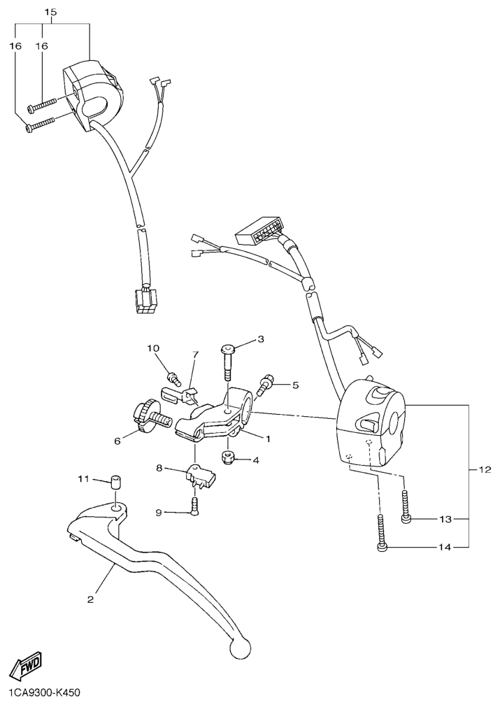 Ohjaustangon katkaisija ja vivut, FZ1-S 2012, FZ1-S, 1000 cc, Yamaha -varaosa luettelot