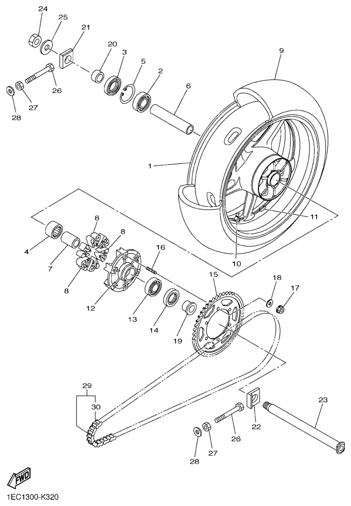 Takapyörä, FZ1-S 2012, FZ1-S, 1000 cc, Yamaha -varaosa luettelot