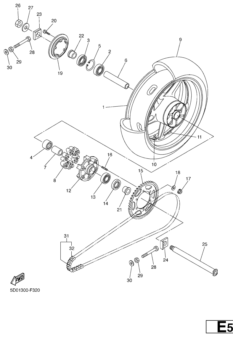 Takapyörä, FZ1-SA 2008, FZ1-SA, 1000 cc, Yamaha -varaosa luettelot