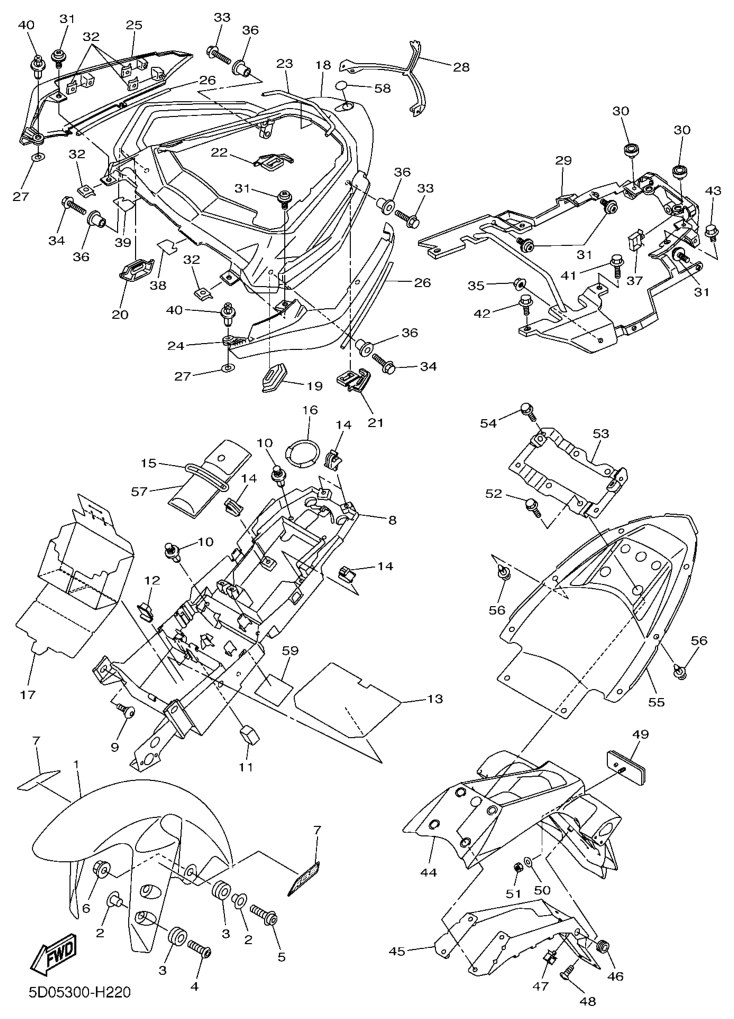 Lokasuoja, FZ1-SA 2009, FZ1-SA, 1000 cc, Yamaha -varaosa luettelot