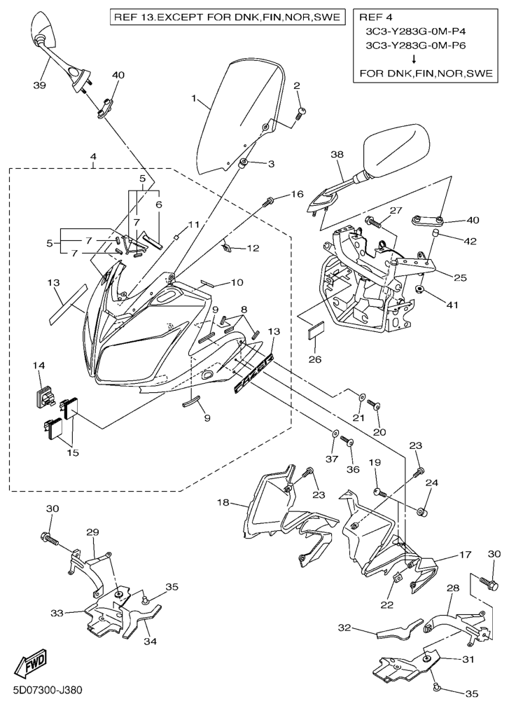 Cowling 1, FZ1-SA 2010, FZ1-SA, 1000 cc, Yamaha -varaosa luettelot