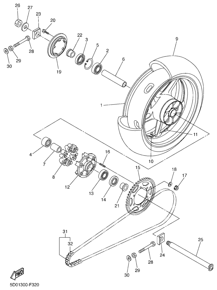 Takapyörä, FZ1-SA 2010, FZ1-SA, 1000 cc, Yamaha -varaosa luettelot
