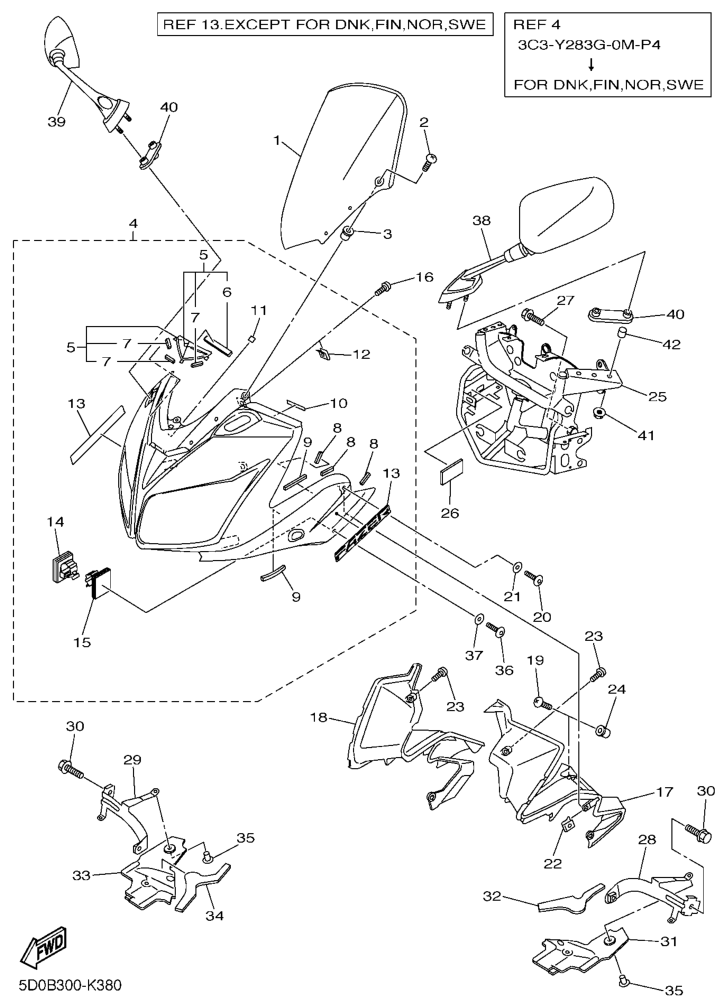 Cowling 1, FZ1-SA 2011, FZ1-SA, 1000 cc, Yamaha -varaosa luettelot