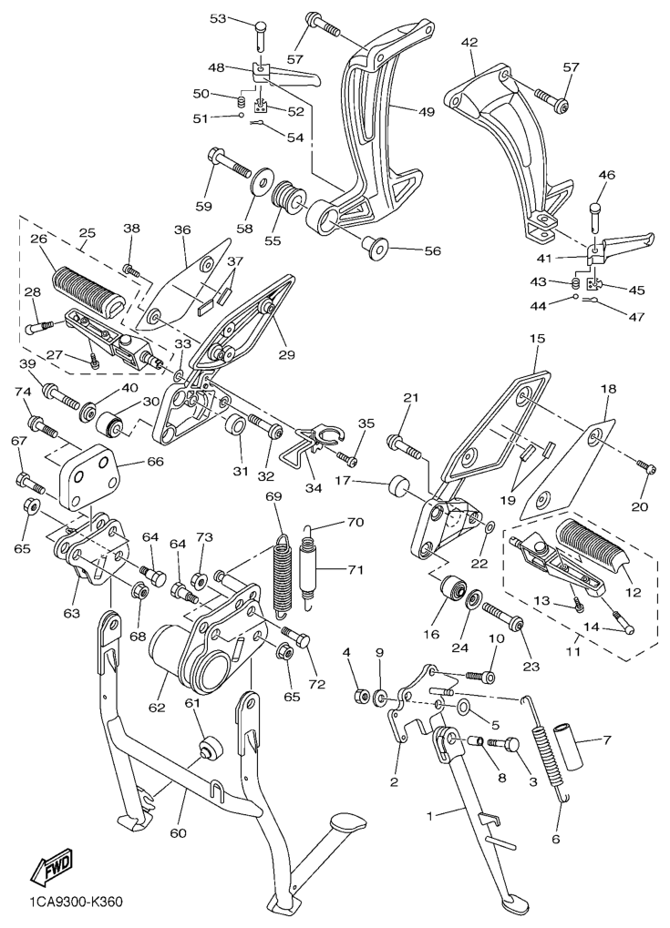 Seisontatuki ja jalkatapit, FZ1-SA 2011, FZ1-SA, 1000 cc, Yamaha -varaosa luettelot