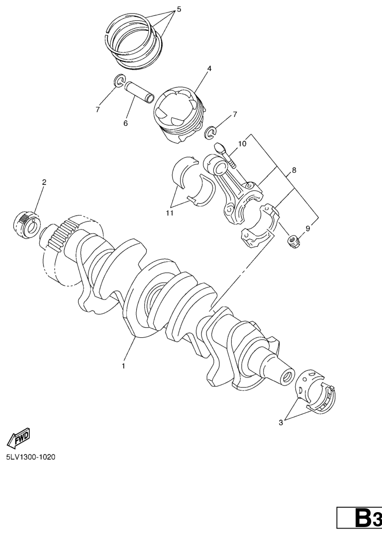 Kampiakseli ja mäntä, FZS1000 2004, FZS1000, 1000 cc, Yamaha -varaosa luettelot