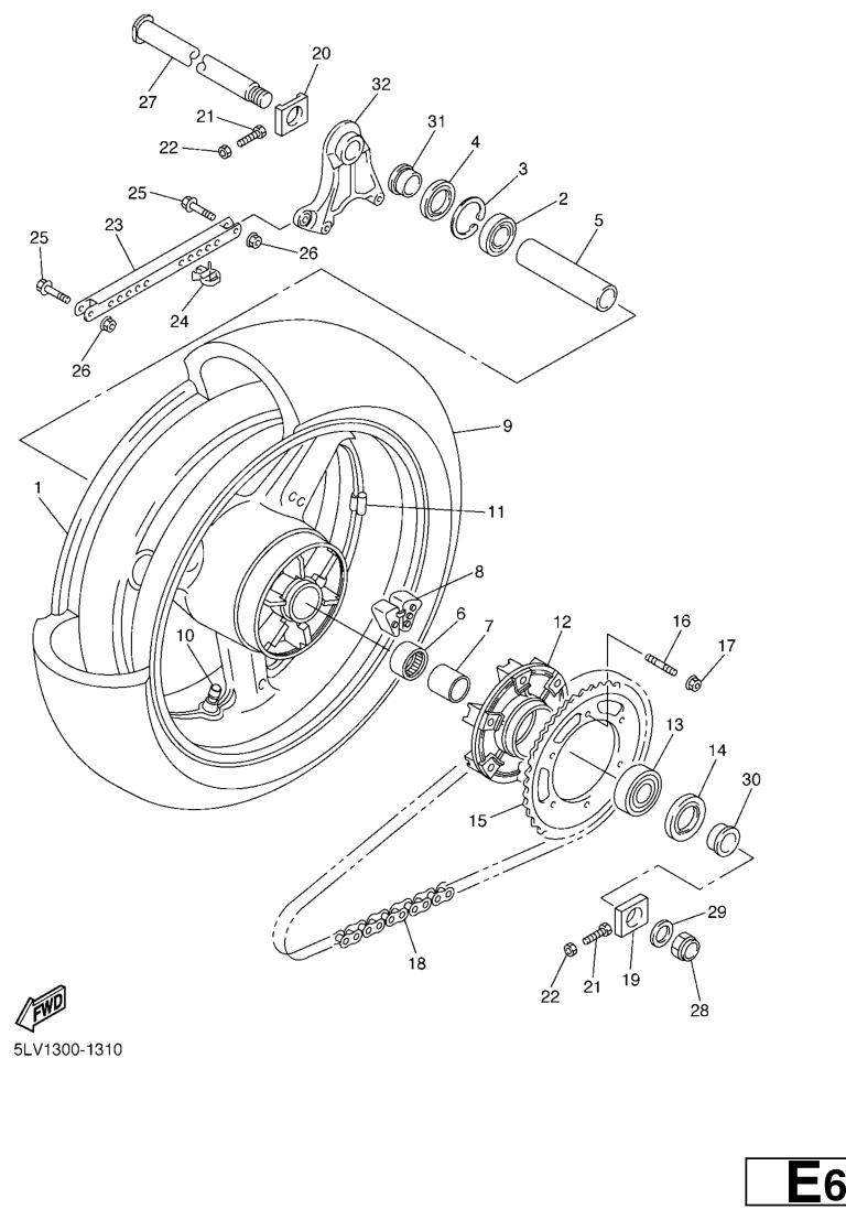 Takapyörä, FZS1000 2004, FZS1000, 1000 cc, Yamaha -varaosa luettelot