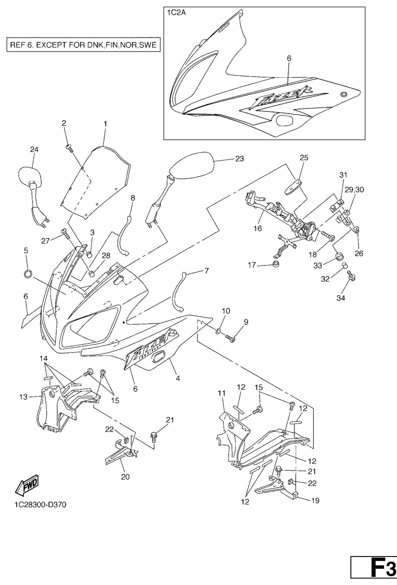 Cowling 1, FZS1000 2005, FZS1000, 1000 cc, Yamaha -varaosa luettelot